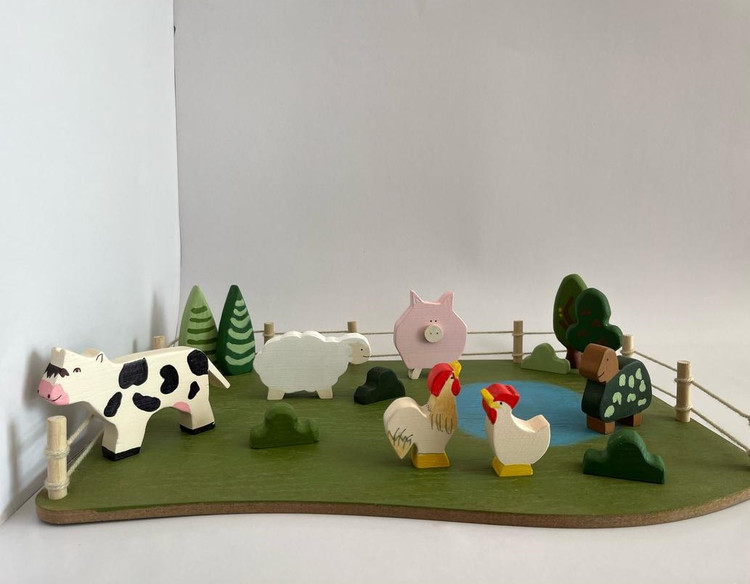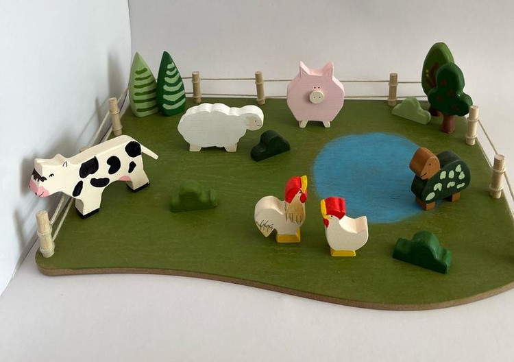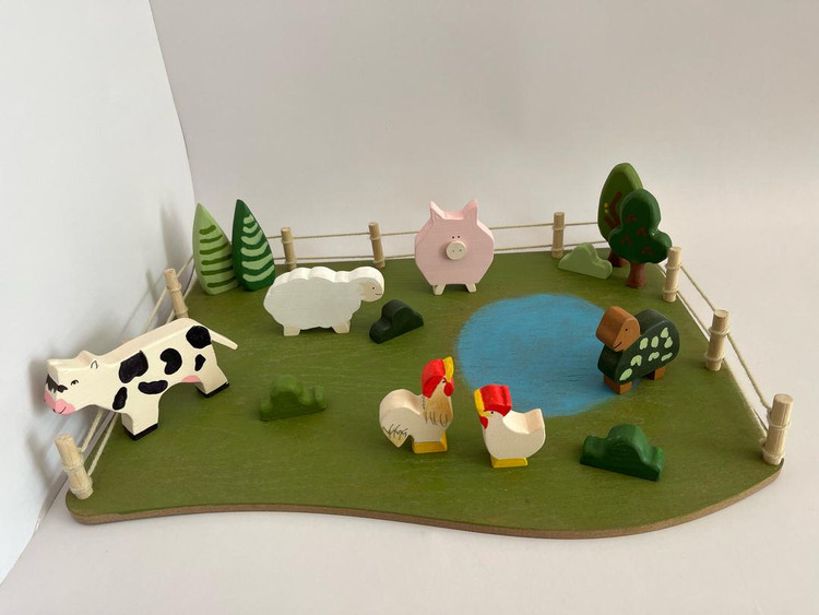 اسباب بازی حیوانات چوبی داخل مزرعه